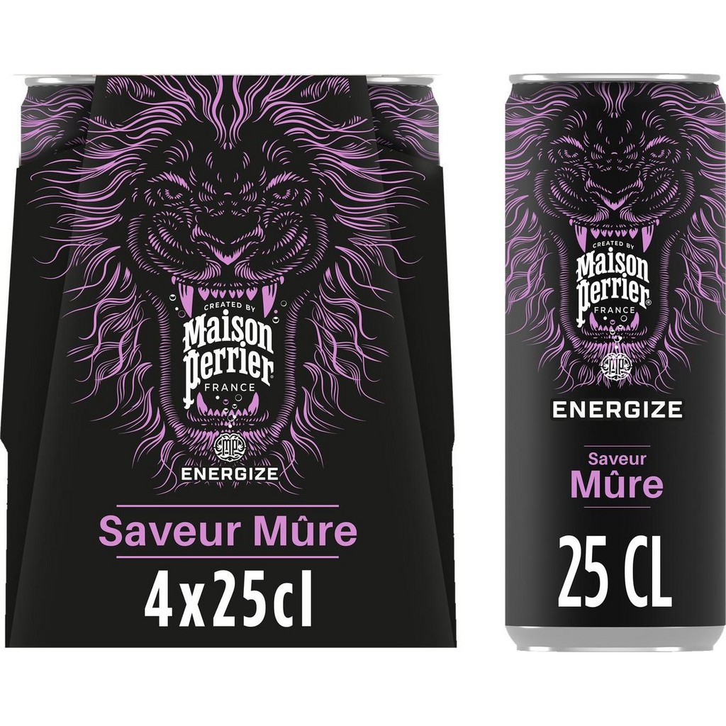 PERRIER Boisson Énergisante Saveur Mûre 4x25cL (pack de 4)